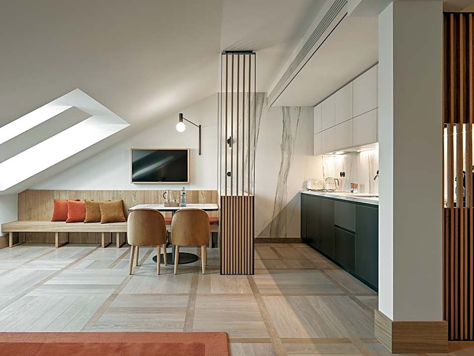 The spacious suite features air conditioning, a tea and coffee maker, as well as a private bathroom boasting a walk-in shower and a bath. In the well-equipped kitchen, guests will find a stovetop, a refrigerator, a dishwasher and kitchenware. The suite has parquet floors, a seating area with a flat-screen TV, a dining area, a wardrobe as well as city views. The unit has 1 bed.
